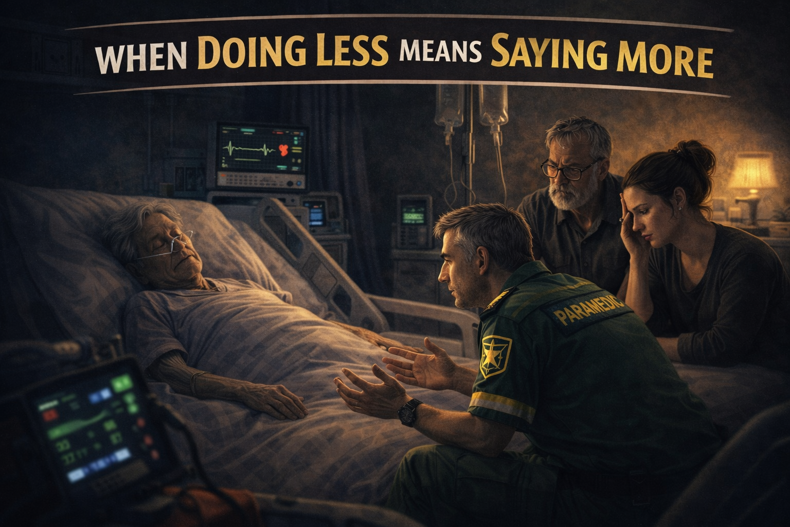 The ambulance arrives, and the expectation is already set. The uniform, the vehicle, the equipment — it all signals action. Families call because something is wrong, and they expect something to be done. In most cases, that expectation is met without question. But in palliative care, there comes a point at which the right clinical decision is not to escalate. Not to start aggressive treatment, not to begin resuscitation, not to take the patient to the hospital, and those decisions rarely land easily. They go against what the family thinks should happen. They go against what we have been trained, instinctively, to do, and they often go against the internal voice that equates action with care, and stillness with failure. The difficulty is not in knowing what is clinically appropriate. Most experienced clinicians, standing in that room, know what the right course is. The difficulty is in explaining it in a way that the family can hear, at a moment when they are least equipped to receive it because standing in someone’s home, with family members looking at you, asking if you can help, and responding with a controlled, careful version of the truth — that there is nothing we can do to stop this — is one of the hardest parts of the job. It is not delivered in those words, but that is what is being communicated and how that message is delivered matters enormously. Too soft, and it creates false hope that will make the hours or days ahead harder. Too blunt, and it causes a different kind of harm, one that strips people of the space they need to process what is happening. Too clinical, and it creates distance at exactly the moment when connection is what the room needs.